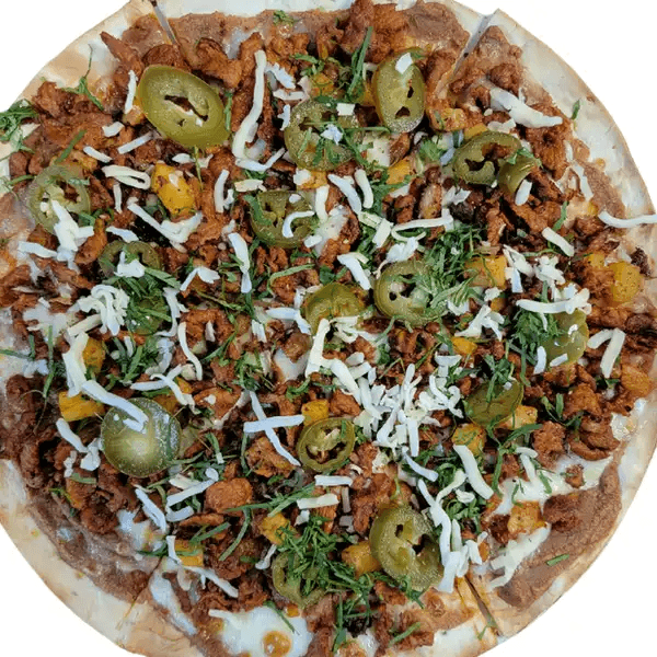 Pastor, pineapple, cilantro, jalapeños, and Oaxaca cheese