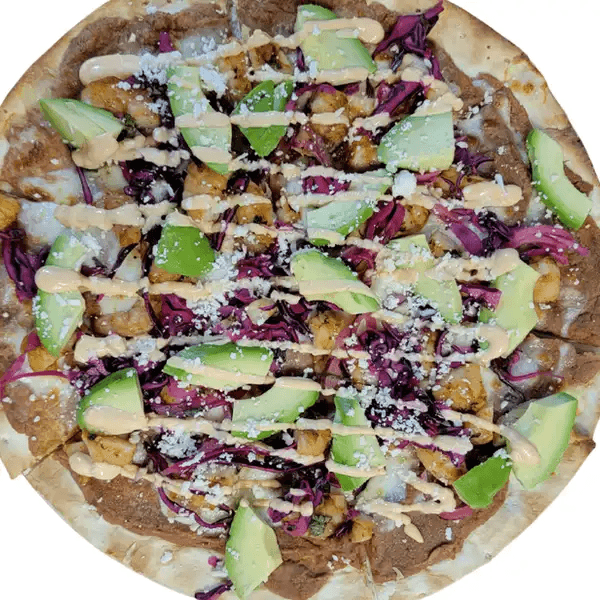 3 enchiladas topped with guajillo sauce, melted cheese, and sour cream and filled with your choice of meat (steak, al pastor, chicken, ground beef, or veggies)
